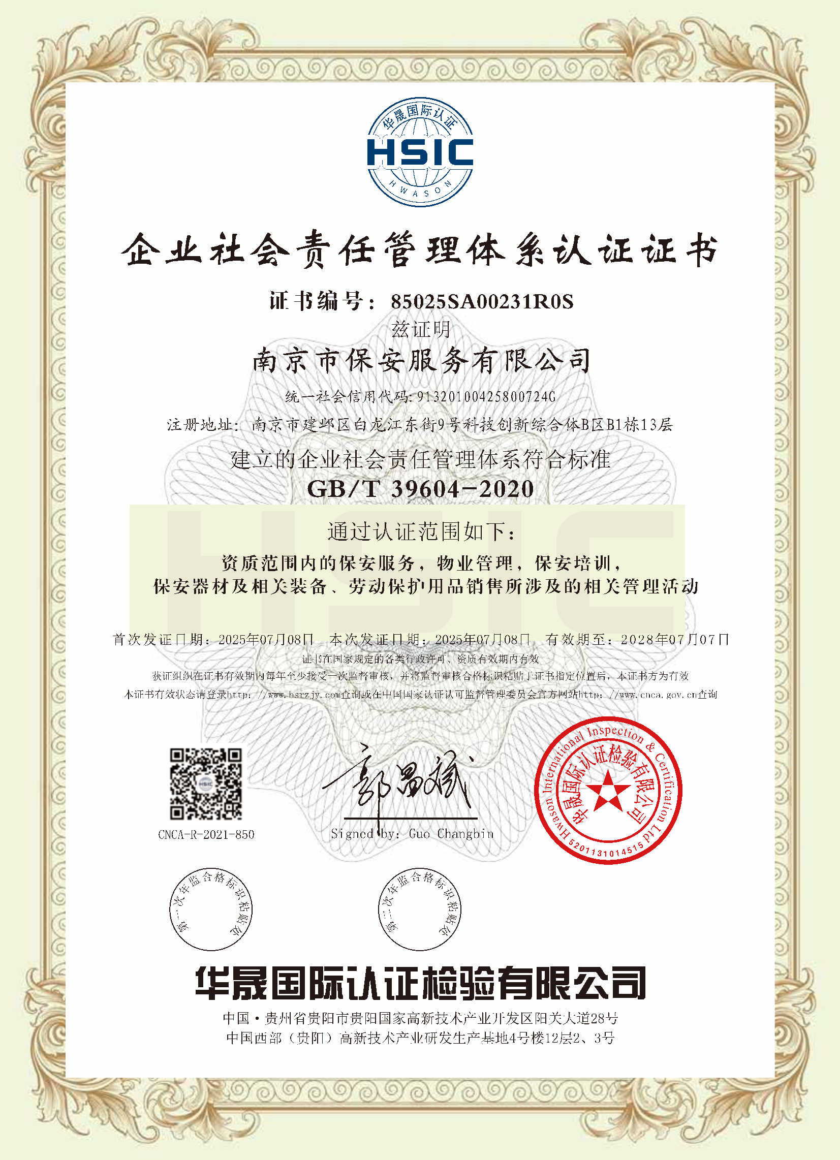 祝賀:南京市保安服務(wù)總公司通過企業(yè)誠信管理體系認(rèn)證和企業(yè)社會責(zé)任管理體系認(rèn)證[07-16]